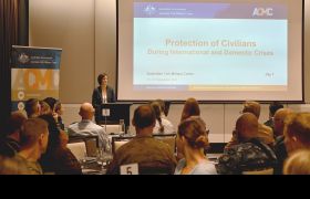 ACMC Executive Director, Nicola Rosenblum, opened the workshop, which featured a range of presentations, including Beth Eggleston (Humanitarian Advisory Group), Jens-Martin Mehler (International Committee of the Red Cross) and Professor David Letts (Australian National University). Case studies centred on the risks of unexploded ordnance to civilian populations, protection of civilians in the maritime environment, climate impacts on civilian populations and the challenges of state and non-state actors conducting disinformation campaigns against civilians during a crisis.